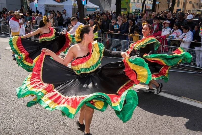 Carnival in the South American tradition is also evident at Hackney carnival with plenty of guest bands such as Paraiso presenting Rio style samba, Talentos with their swirling skirts in a Colombian tradition and Bolivian groups Caporales San Simon Londres and Caporales Mi Viejo San Simon. Caporales is a high energetic dance that depicts a foreman of the African slaves in the Colonial period in Bolivia.